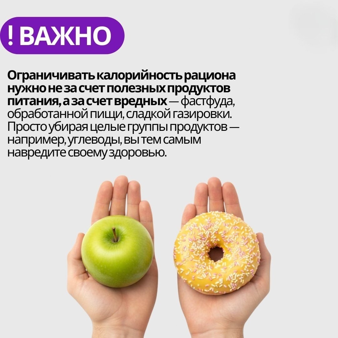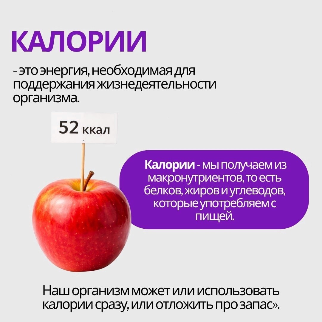 Калории — это тот показатель, который можно контролировать: для расчета ежедневной потребности существуют специальные формулы, а все продукты имеют маркировку калорийности.
